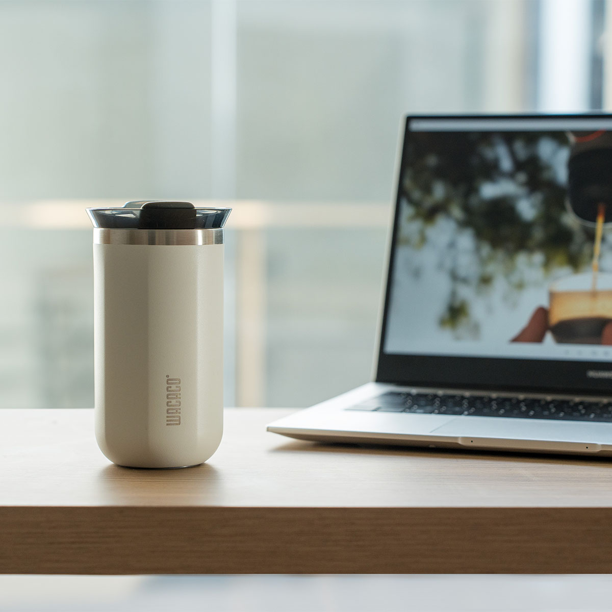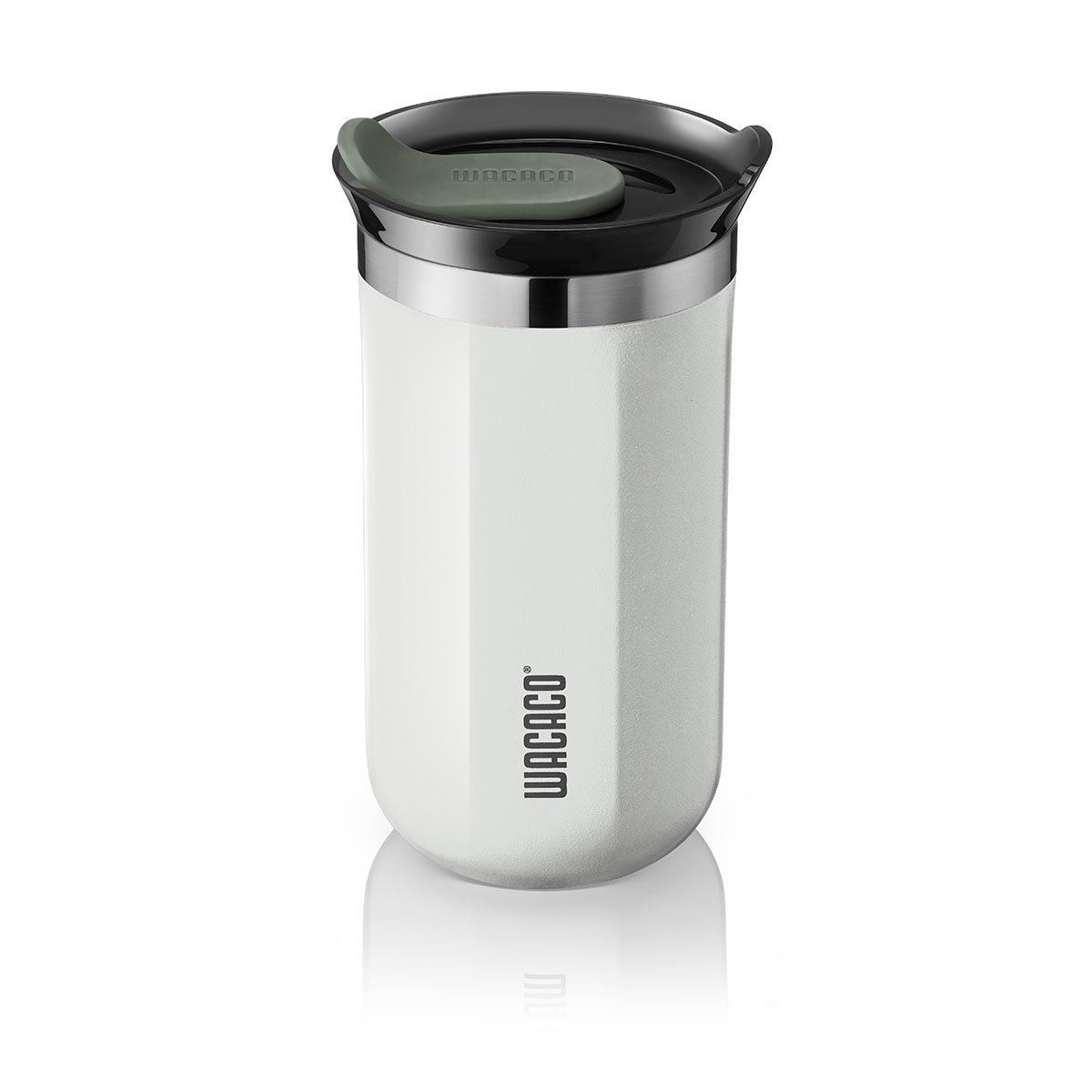 Termohrnček Octaroma od Wacaco. Objem: 300 ml. Vojde sa do väčšiny držiakov na pohár v aute. Nápoj udrží horúci po dobu 5 hodín.
